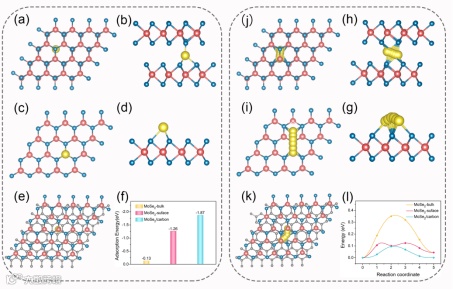 图3 钠离子在MoSe2体内、MoSe2表面及MoSe2/C异质结面处的吸附能、扩散路径和能垒图