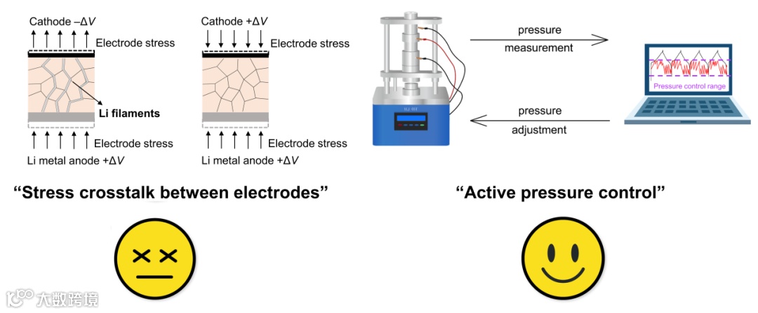 考虑到电极之间的应力串扰对 SSE 的机械损伤和随后的微短路行为的影响,确保锂金属全电池在理想的电化学机械平衡条件(即恒定的电池堆压力)下工作至关重要。研究人员提出了一种主动压力控制系统,该系统在循环过程中实时测量电池压力,并根据与预设堆栈压力的偏差调整当前压力。整个系统通过 "反馈调整 "机制来减轻 ASSLMB 在循环过程中的应力串扰。该系统能够实现 S442-Li 和 NCM811-Li 电池的稳定长循环。