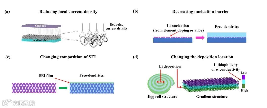 图 2. 框架/宿主抑制枝晶生长的四种策略。