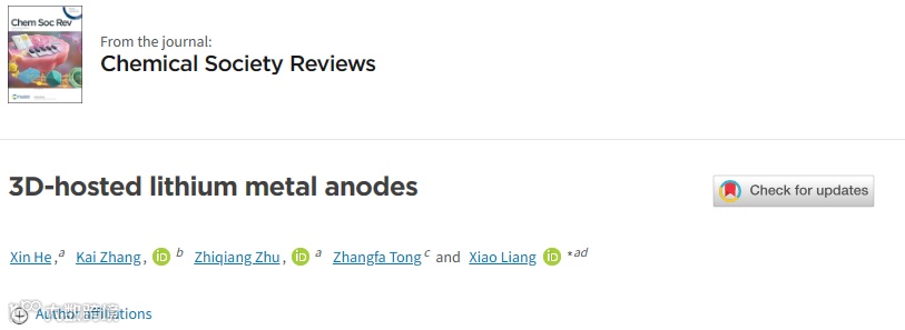 近日,湖南大学贺鑫、梁宵教授在国际知名期刊Chemical Society Reviews上发表题为“3D-hosted lithium metal anodes”的综述文章。该综述全面归纳分析了框架/宿主材料的发展历史、阶段划分、枝晶抑制机制、材质分类、存在困境与挑战,同时对其设计准则与发展趋势进行了展望。