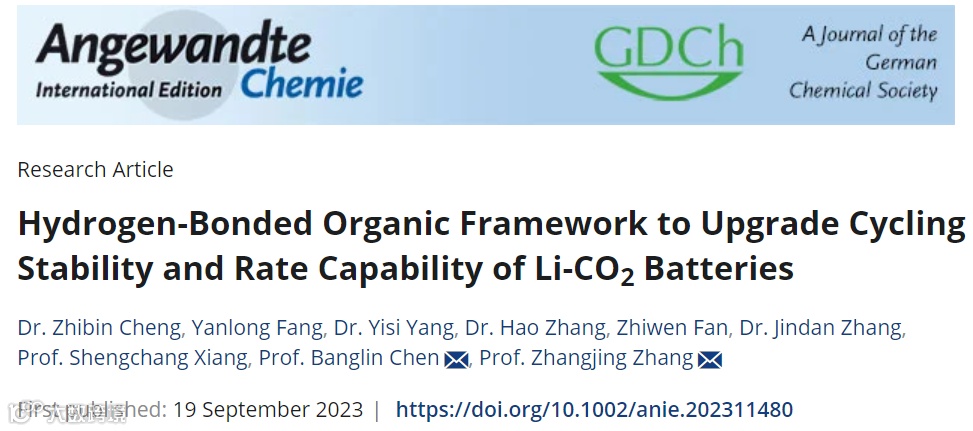 基于此,福建师范大学化学与材料学院程志斌副教授、张章静教授、陈邦林教授在知名期刊Angewandte Chemie(IF:16.6)上发表题为“Hydrogen-Bonded Organic Framework to Upgrade Cycling Stability and Rate Capability of Li-CO2 Batteries”的研究工作。