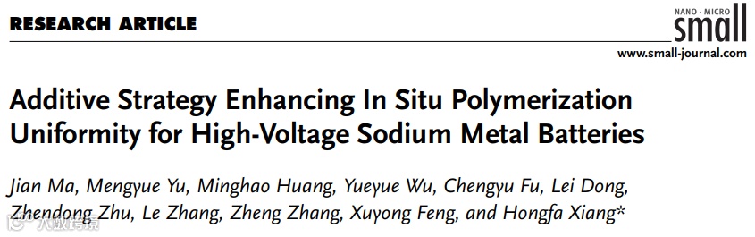 近日,合肥工业大学项宏发教授课题组在国际知名期刊《Small》上发表题为“Additive Strategy Enhancing In Situ Polymerization Uniformity for High-Voltage Sodium Metal Batteries”的文章,聚焦了原位固化电解质中的气体残留问题及聚合不均匀现象,通过在原位固化电解质中引入一种多功能硅烷基添加剂N-甲基-N-(三甲基硅烷基)三氟乙酰胺(MSTFA),实现电解质均匀性提升及高电压钠金属电池循环稳定性提升,实现“一箭双雕”的效果。