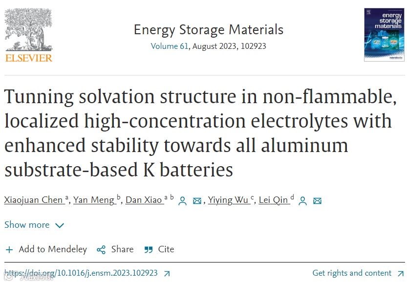 Tuning solvation structure in non-flammable, localized high-concentration electrolytes with enhanced stability towards all aluminum substrate-based K batteries https://www.sciencedirect.com/science/article/pii/S240582972300301X