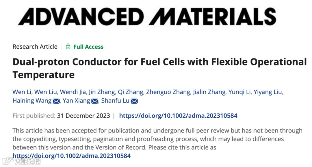 双质子导体实现燃料电池宽温域操作