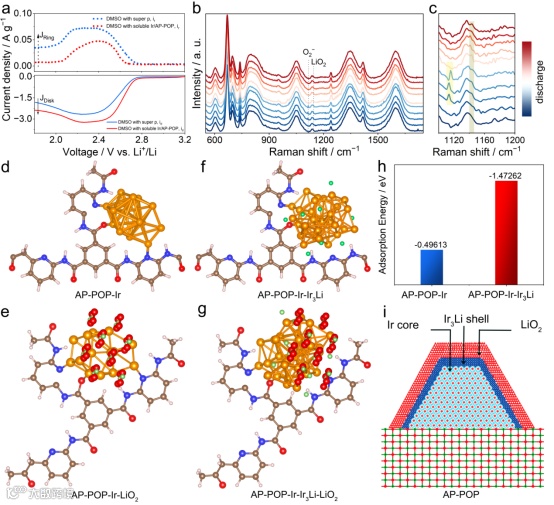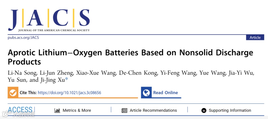 近日,吉林大学徐吉静课题组在国际知名期刊Journal of the American Chemical Society上发表题为“Aprotic Lithium–Oxygen Batteries Based on Nonsolid Discharge Products”的研究文章。该工作通过将铱单原子锚定在孔状有机聚合物中,制备了Ir/AP-POP液相电催化剂,由于铱金属与超氧化锂(LiO2)的晶格高度匹配,借助溶液中单原子高分散且单一的活性位点与放电中间体LiO2实现完全耦合,最终将放电产物调控为溶解在电解液中的LiO2,构筑了基于非固体放电产物的锂空气电池新体系,大幅提高了电池的放电容量、倍率性能、能量转换效率和循环寿命。