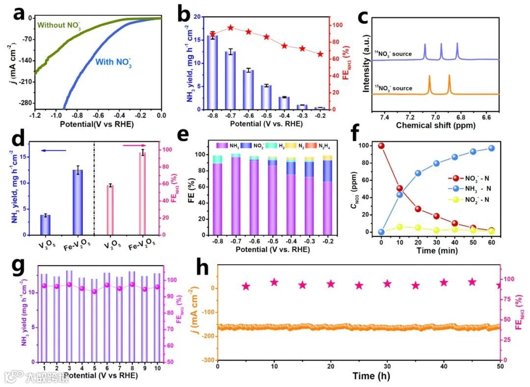 路易斯酸Fe-V双位点促进硝酸盐电还原合成氨