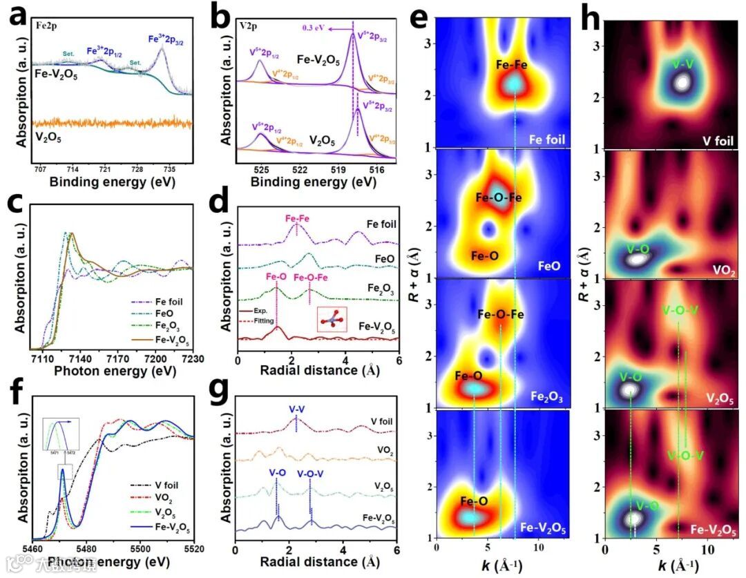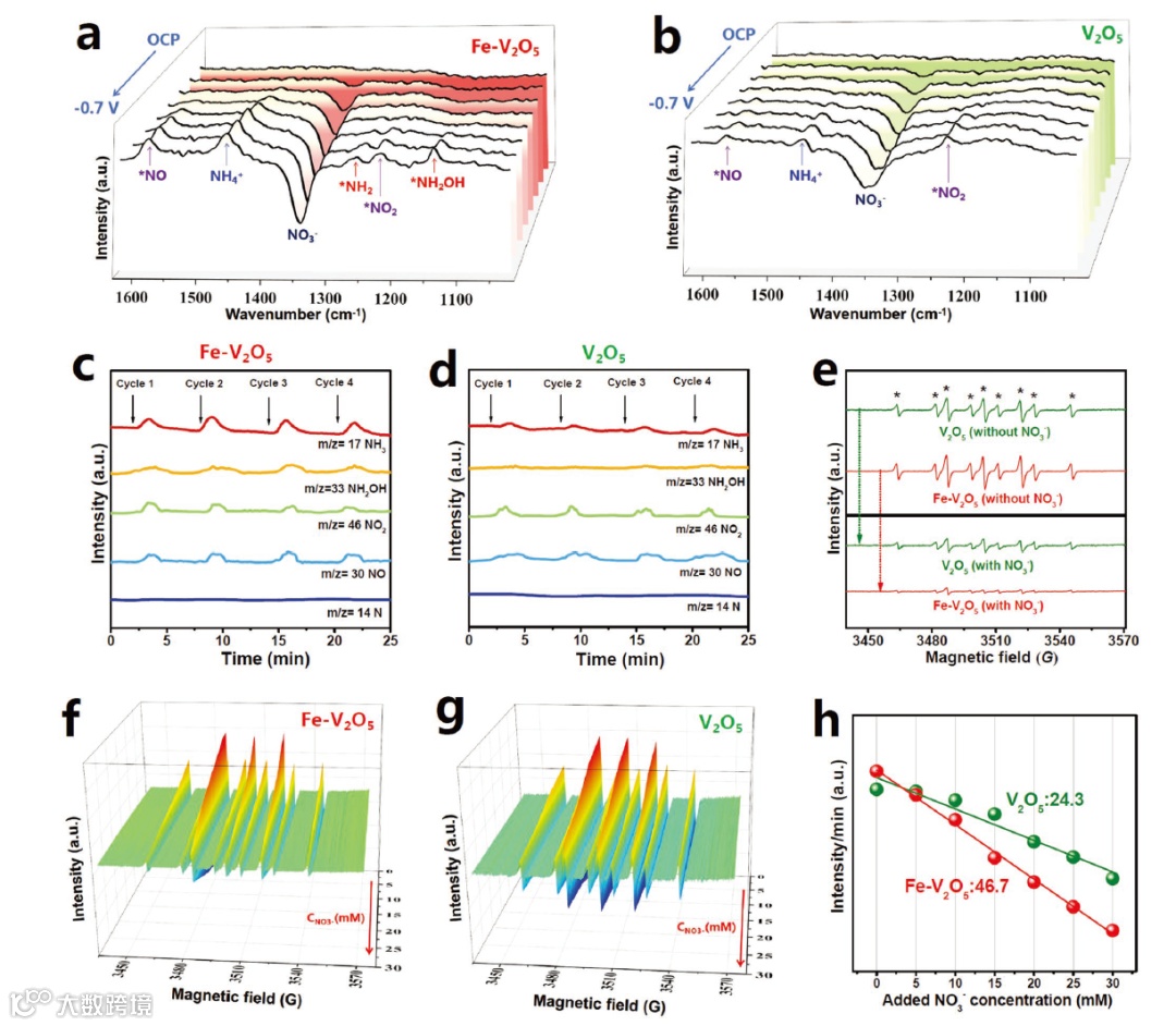 图5. 电化学原位光谱分析Fe-V2O5的NO3RR反应过程