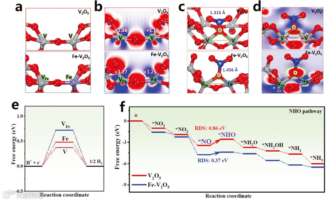 图4. Fe-V2O5的NO3RR性能的DFT理论计算