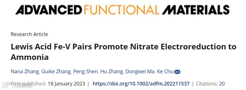 Nana. Zhang, Guike. Zhang, Peng. Shen, Hu. Zhang, Dongwei. Ma and Ke. Chu*, Lewis acid Fe-V pairs promote nitrate electroreduction to ammonia, Adv. Funct. Mater., 2023, 33, 2211537.