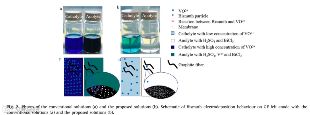 要点三:采用低浓度钒溶液作为正极液可实现金属纳米铋的均匀沉积