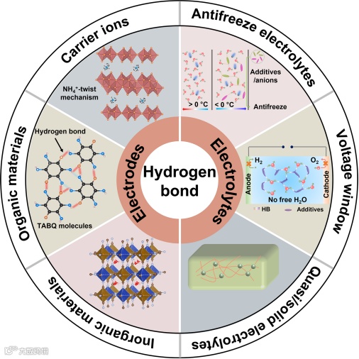 图2. 可充电池中的氢键化学。