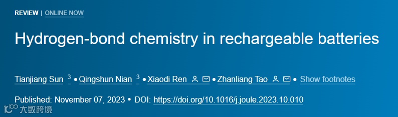 Tianjiang Sun, Qingshun Nian, Xiaodi Ren*, Zhanliang Tao* Hydrogen-Bond Chemistry in Rechargeable Batteries, Joule, 2023.