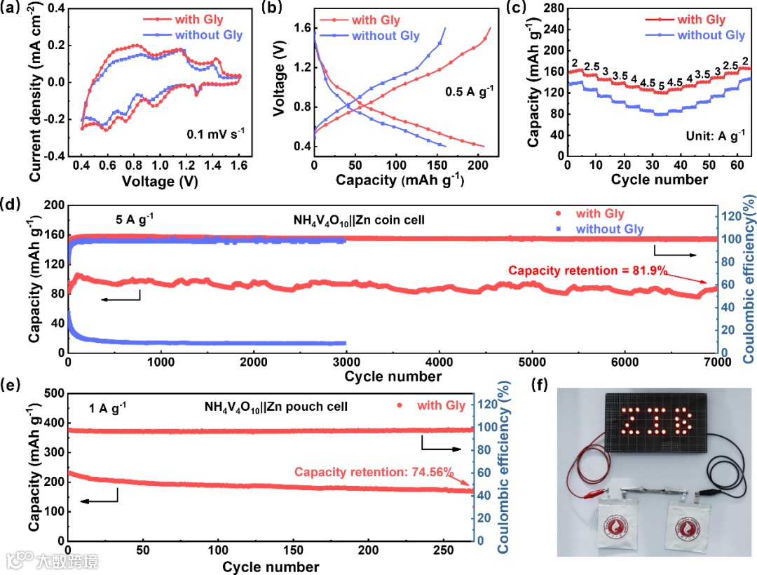 要点4:甘氨酸对锌阳极和全电池的电化学性能提升作用