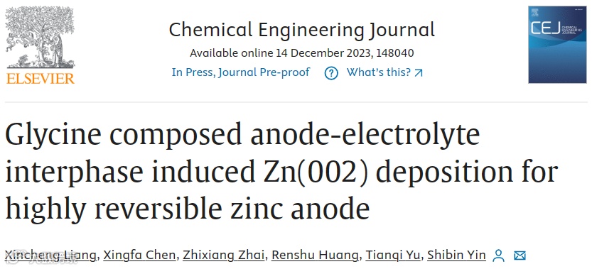 甘氨酸构成的阳极-电解液界面引导Zn(002)晶面沉积实现高度可逆的锌阳极