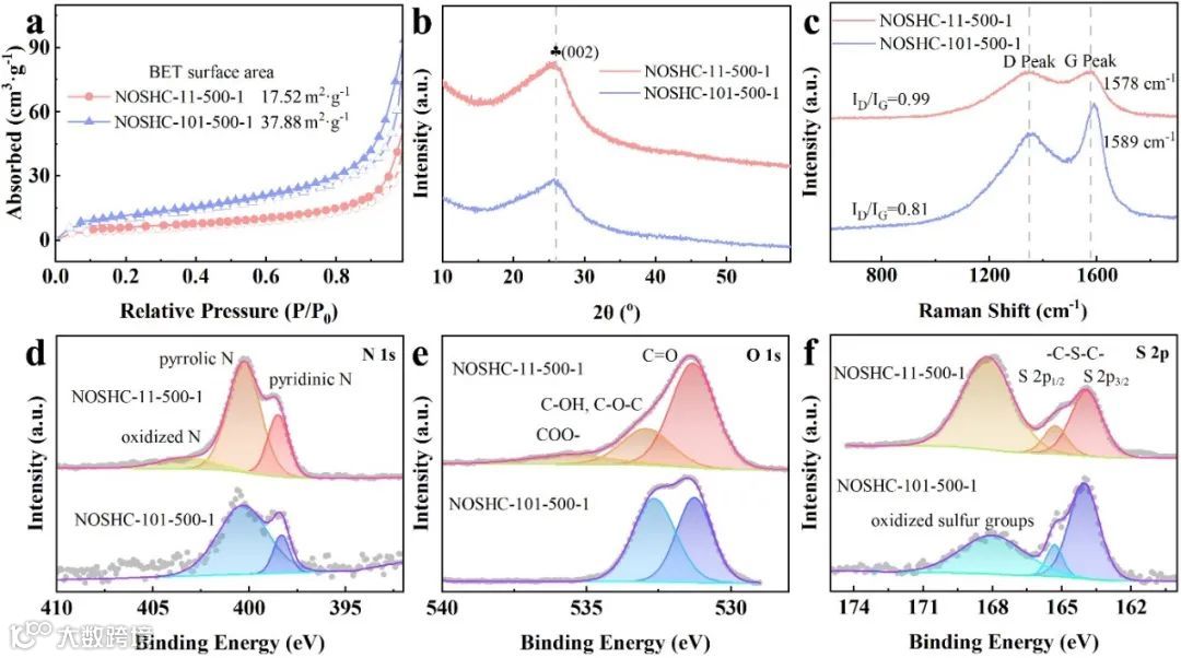 图3. NOSHC-11-500-1与NOSHC-101-500-1的物相及化学结构表征。