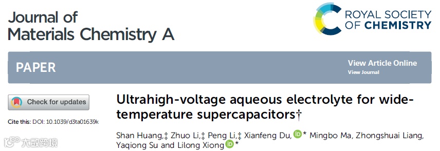 超高压水系电解液用于宽温度超级电容器