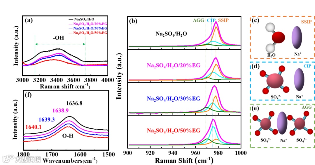 图3. 水分子和EG分子在电极表面的吸附能不同,吸附能力有所差别。在未添加EG的水系电解液中,水分子会攻击电极表面,从而在其表面分解。而在加了EG之后,会取代溶剂化鞘层中多余的水分子,从而扩宽电化学稳定窗口。