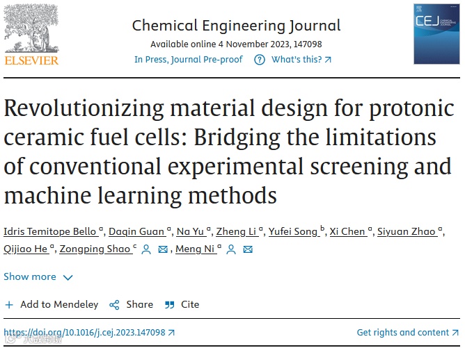 近日,香港理工大学倪萌教授和澳大利亚科廷大学邵宗平教授发表了题为“Revolutionizing Material Design for Protonic Ceramic Fuel Cells: Bridging the Limitations of Conventional Experimental Screening and Machine LearningMethods”的论文。在这项研究中,统计EDP被用来开发陶瓷燃料电池的阴极材料。具体而言,选择 BaCoαCeβFeγYζO3-δ (BCCFY) 和BaαSrβCoγFeζO3-δ (BSCF)成分作为概念验证,仅使用 16 个独立条件和 32 次随机实验即可迅速确定最佳成分为BaCo0.667Ce0.167Fe0.083Y0.083O3-δ 和 Ba0.8Sr0.2Co0.5Fe0.5O3-δ.。最佳的BCCFY组合物表现出优异的性能,具有低面积比电阻和高峰值功率密度。同样,与原始Ba0.5Sr0.5Co0.8Fe0.2O3-δ正极材料组合物相比,最佳BSCF表现出超过55%的氧还原反应活性提高。这项研究的结果凸显了 EDP 在有效设计用于固态电化学发电系统的优质材料方面的潜力,为有限的试错和机器学习方法提供了可靠且实用的替代方案。