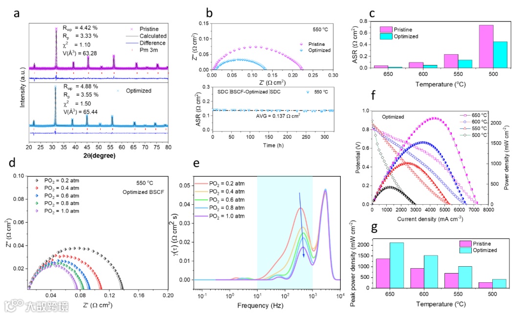 为了展示多功能性,EDP 被进一步应用于优化著名的 SOFC BSCF 阴极材料。优化后的组合物在中间温度下的电催化性能比原始 BSCF 高 55%(图 5)。这凸显了 EDP 作为定制材料创新的广泛适用工具的潜力。