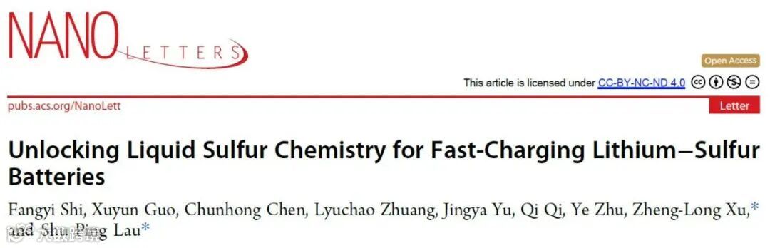 近日,来自于香港理工大学的刘树平与徐正龙教授,在国际知名期刊Nano Letters上发表题为“Unlocking Liquid Sulfur Chemistry for Fast-Charging Lithium–Sulfur Batteries”的观点文章。该文章深刻探讨在充电过程中液态硫在锂硫电池里的角色,并且提出利用液态硫的重塑性实现快速充电锂硫电池。