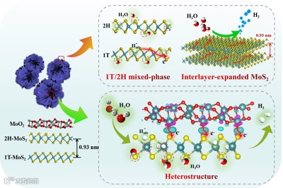 要点一:层间距扩大的1T/2H混合相MoS2和MoO2异质结构的构建