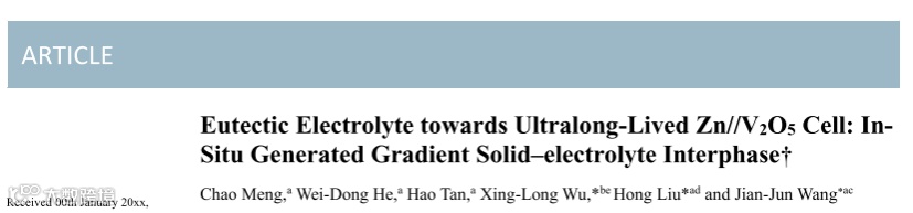共晶电解质诱导原位生成梯度固态电解质界面实现超长寿命Zn//V2O5电池