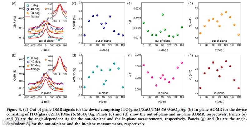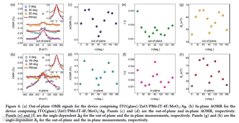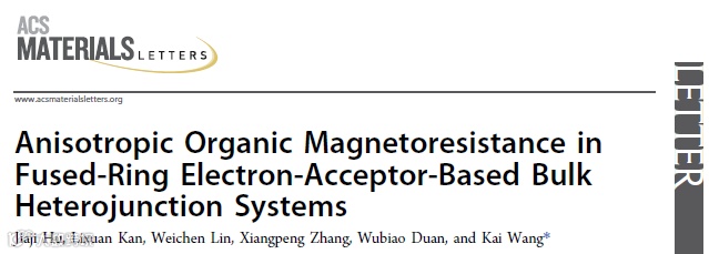 该工作发表于美国化学会杂志ACS Materials Letters,论文题目为:Anisotropic Organic Magnetoresistance in Fused-Ring Electron Acceptors Based Bulk Heterojunction Systems.