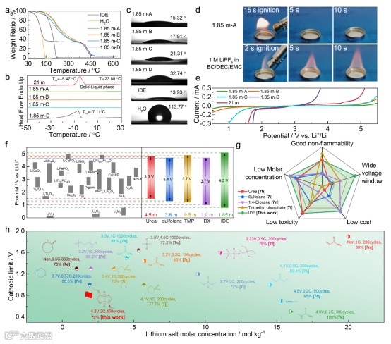 所设计的电解液具有优异的热稳定性、浸润性和阻燃性。与已报道的杂化水系电解液相比,具有更宽的电化学稳定窗口,并且在成本、安全性和环境友好性方面显示出更大的优势。