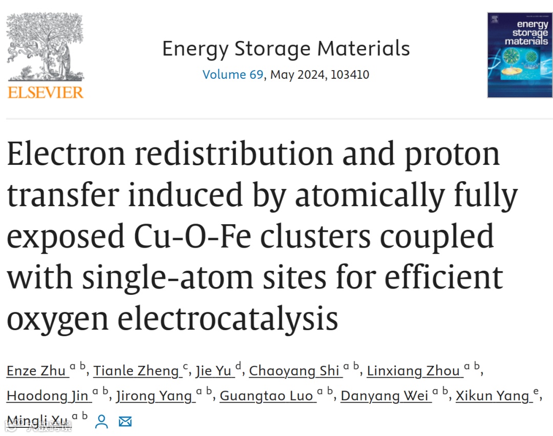 原子全暴露的Cu-O-Fe团簇与单原子位点耦合诱导的电子再分布和质子转移用于高效氧电催化