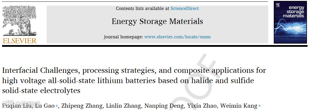 近日,来自天津工业大学的康卫民教授,高鲁讲师在国际知名期刊Energy Storage Materials上发表题为“Interfacial Challenges, Processing Strategies, and Composite Applications for High Voltage All−Solid−State Lithium Batteries Based on Halide and Sulfide Solid−State Electrolytes”的综述文章。该综述文章从卤化物和硫化物固态电解质自身电化学稳定性出发,分析了两种电解质与高能量密度的锂金属阳极/高压阴极间的界面稳定性以及改性策略。基于卤化物和硫化物固态电解质在电极侧的不同表现,分析了两种电解质复合来匹配锂金属阳极以及高压阴极的可能性,同时汇总了近期关于卤化物电解质与硫化物电解质复合应用的研究进展。