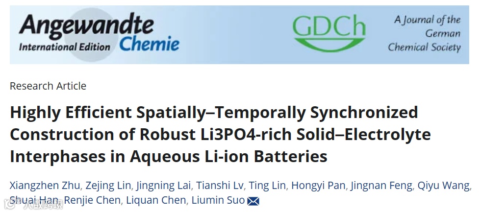 “时空同步”原位高效构建水系锂离子电池界面SEI膜