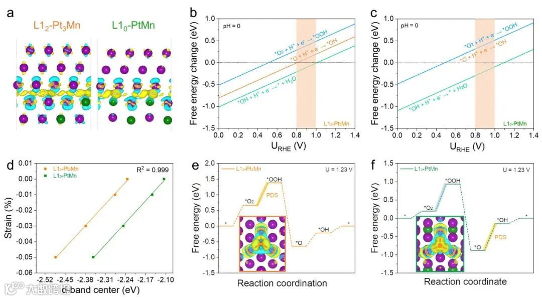 图5. DFT计算揭示L12-Pt3Mn及L10-PtMn的内在活性差异。