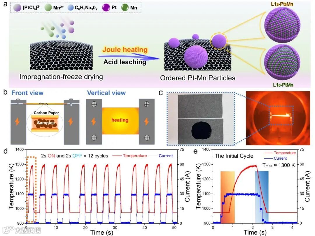 图1. 周期性碳热冲击合成Pt-Mn金属间化合物示意图。