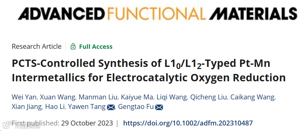 近日,来自南京师范大学的唐亚文&付更涛教授,在国际知名期刊Advanced Functional Materials上发表题为“PCTS-Controlled Synthesis of L10/L12-Typed Pt-Mn Intermetallics for Electrocatalytic Oxygen Reduction”的观点文章。作者采用基于焦耳加热的周期性碳热冲击法(PCTS)成功合成了L12-Pt3Mn和L10-PtMn两种金属间化合物催化剂,并且将这两种Pt-Mn金属间化合物作为模型进一步探究了金属间化合物的晶相对于氧还原活性的影响及其内在影响机制。
