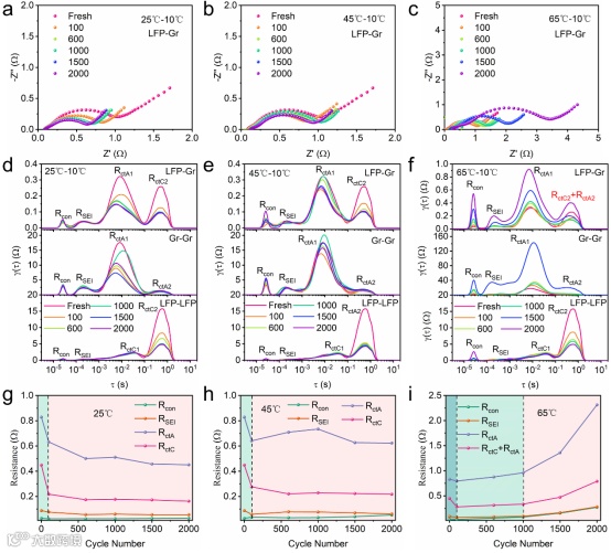 图6. 磷酸铁锂/石墨电池在循环过程中的电化学阻抗分析。