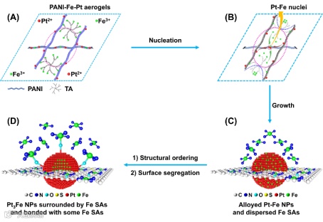 图2. IISS Pt3FeNP-in-Fe SA催化剂的制备过程示意图