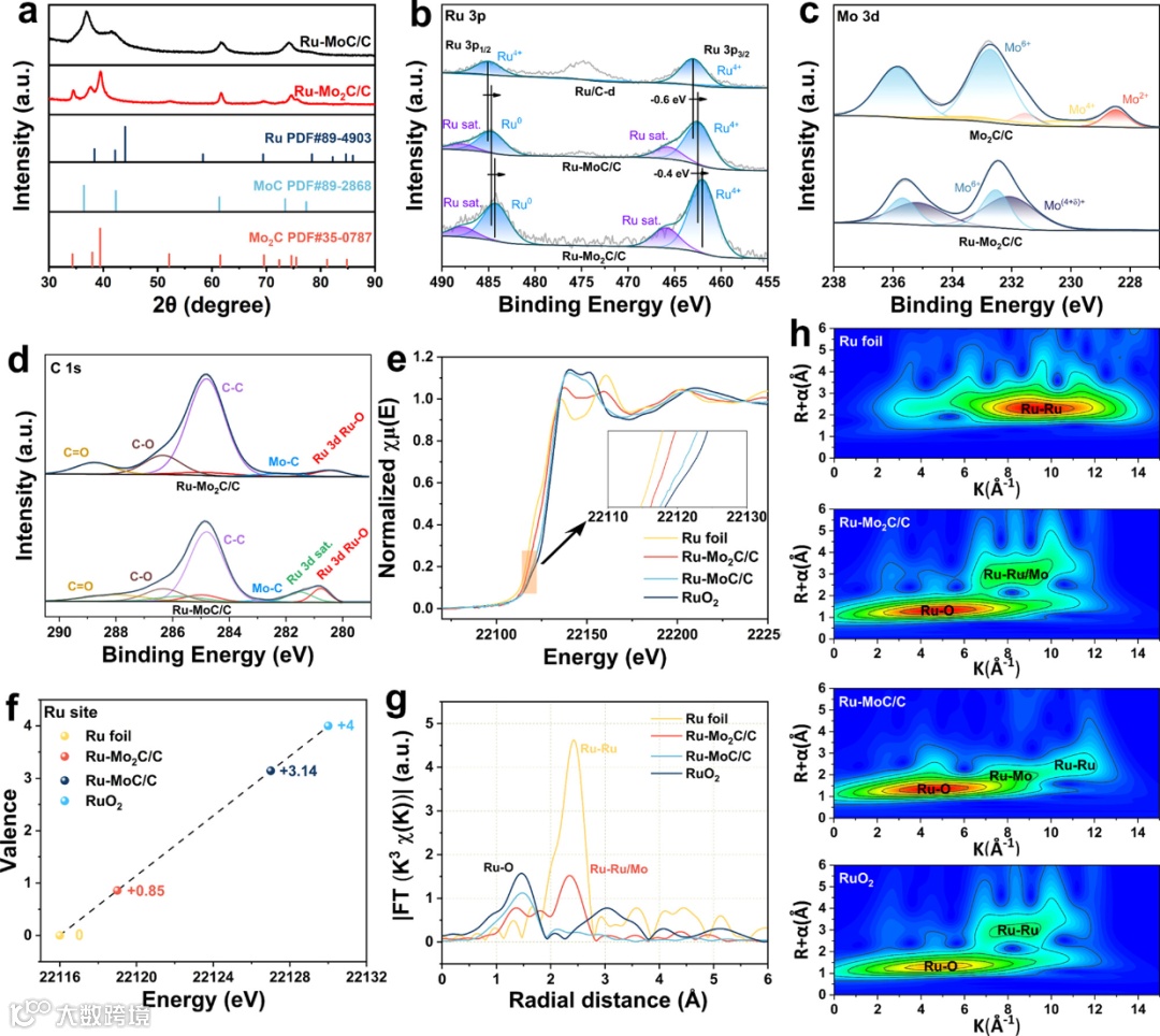 图2 Ru-MoxC催化剂的电子结构表征和配位环境