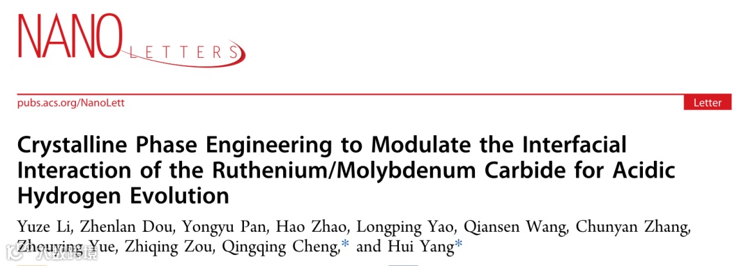 近日,来自中国科学院上海高等研究院的杨辉/程庆庆团队,在国际知名期刊Nano Letters上发表题为“Crystalline Phase Engineering to Modulate the Interfacial Interaction of the Ruthenium/Molybdenum Carbide for Acidic Hydrogen Evolution”的文章。该文章通过载体的晶相工程调节活性位点Ru的电子结构,使其本征活性得到提高,优化后的催化剂在PEMWE中具有优异的性能(1.58 V@ 1.0 A cm–2)和长期稳定性(500 h@ 1.0 A cm–2)。