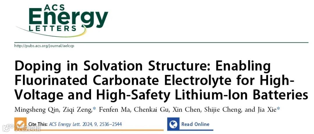近日,华中科技大学谢佳教授团队,在国际知名期刊ACS Energy Letters上发表题为“Doping in Solvation Structure: Enabling Fluorinated Carbonate Electrolyte for High-Voltage and High-Safety Lithium-Ion Batteries”的研究性论文。该文章从分子角度揭示了电解质还原稳定性差的原因并提出“溶剂化结构掺杂”原理来指导提升电解液的LUMO能级,改善电解液/电极界面稳定性。