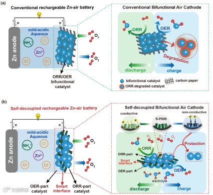 自解耦氧电催化过程用于弱酸性可充金属锌-空气电池
