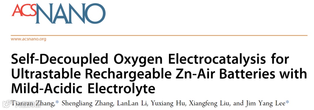 近日,来自中国科学院大学的张天然副教授与新加坡国立大学的Jim Yang Lee教授在国际知名期刊ACS Nano上发表题为“Self-Decoupled Oxygen Electrocatalysis for Ultra-Stable Rechargeable Zn-Air Batteries with Mild-Acidic Electrolyte”的研究文章。该文章提出了一种"自解耦"策略,通过在单一空气电极中构建智能界面,使双功能催化剂在充放电过程中实现功能解耦,从而显著催化剂的稳定性。