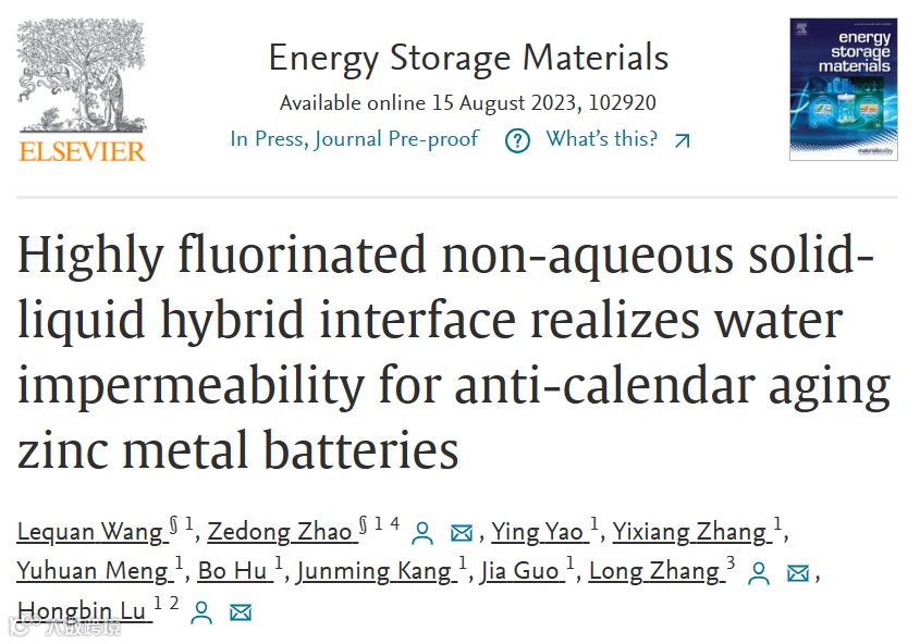高度氟化的非水相固液复合界面的不透水性实现锌金属电池的抗日历老化