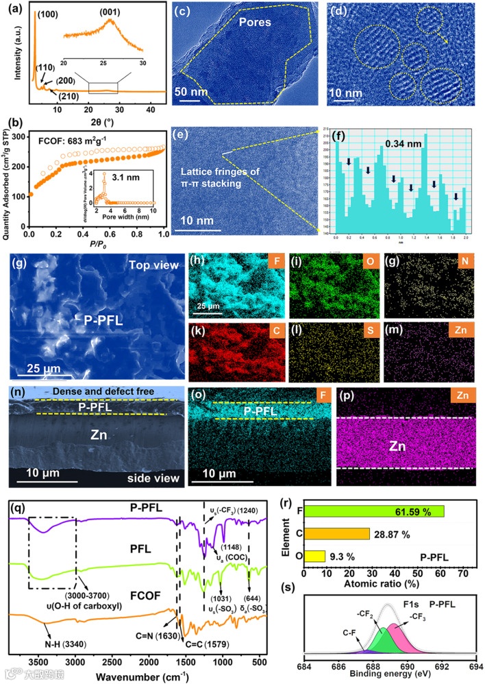 图2 FCOF以及P-PFL@Zn的形貌与结构表征