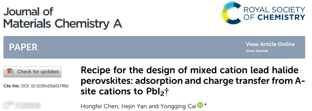 混合阳离子卤化铅钙钛矿的设计配方:从A位阳离子到PbI2的吸附和电荷转移