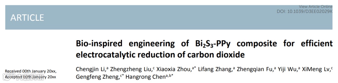受生物启发的Bi2S3-PPy复合材料构建及其高效电催化还原二氧化碳研究