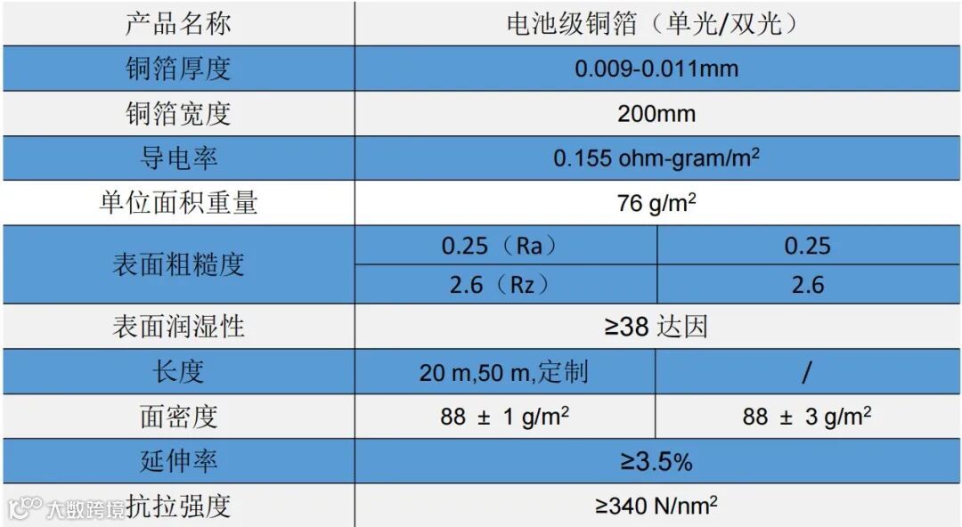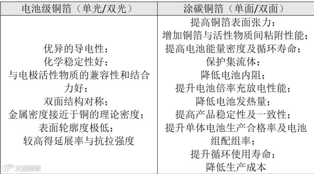 1. 电池级铜箔(单光/双光):各类锂离子电池的负极集流体
