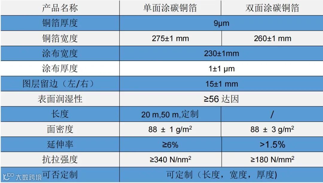 2. 涂碳铜箔(单面/双面):动力储能锂离子电池(SiC)、3C类离子电池(S/C)、水系锂离子电池