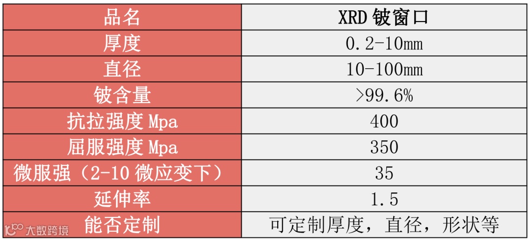 3. 易于安装和更换:XRD铍窗口采用标准尺寸和安装接口,可以方便地安装在XRD仪器上,并且易于更换。
