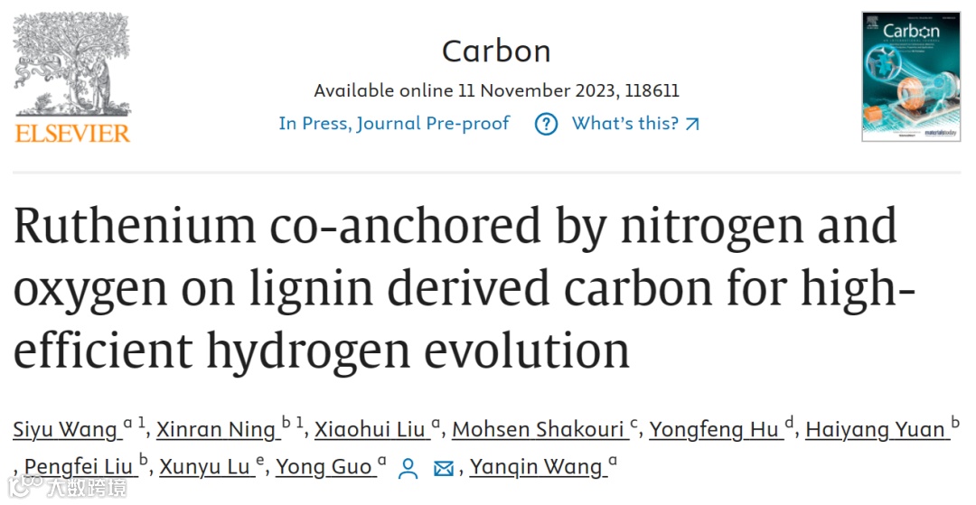 近日,华东理工大学王艳芹教授课题组的郭勇等人报道了在碳基电解水析氢反应催化剂的制备研究上取得进展,并在国际知名期刊Carbon上发表题为“Ruthenium co-anchored by nitrogen and oxygen on lignin derived carbon for high-efficient hydrogen evolution”的文章。该文章提出了由木质素和廉价易得的三聚氰胺为原料,制备富含氮和氧元素的碳基材料的新方法。通过碳上氮和氧元素的共同锚定,将钌金属在热解过程中控制在团簇尺寸,使合成的Ru/CNO材料实现高效催化析氢。通过该方法合成的Ru/CNO材料不仅具有优异的HER活性和100%的法拉第效率,并且在达到安培级的大电流后仍能保持良好的活性和稳定性。
