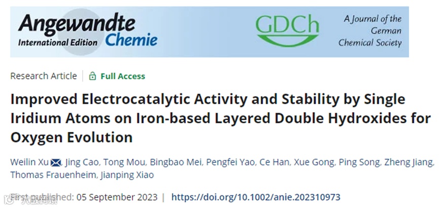 单原子铱提升铁基双氢氧化物氧析出电催化活性与稳定性。